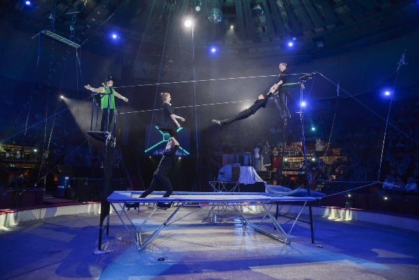 Ámulatba ejtő bizalomjátékot mutat be az öt kubai artistaművész a levegőben: minden veszélyre fittyet hányva repülnek a trapézon a magasban, hogy végül társuk biztonságot nyújtó kezében megkapaszkodva szárnyaljanak tovább a levegőben. A havanai csapat néhány tagjának már nem ismeretlen a budapesti porond, hiszen Dayana és Juan Carlos már fellépett a Fővárosi Nagycirkuszban többek között a 10. Budapesti Nemzetközi Cirkuszfesztiválon is.