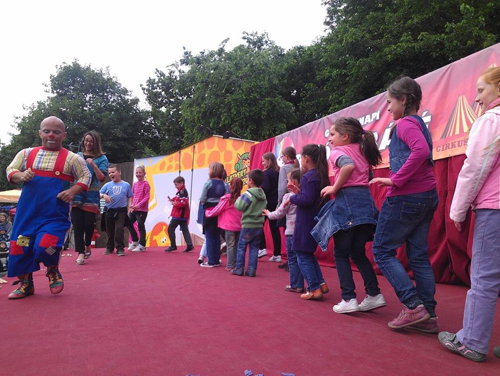 A nap legnagyobb kedvence, Gábor bohóc volt, aki az akrobatamutatványai mellett, a kicsik rekeszizmait is megtornáztatta, sőt még egy mókás koreográfiát is tanított a bátor vállalkozóknak.